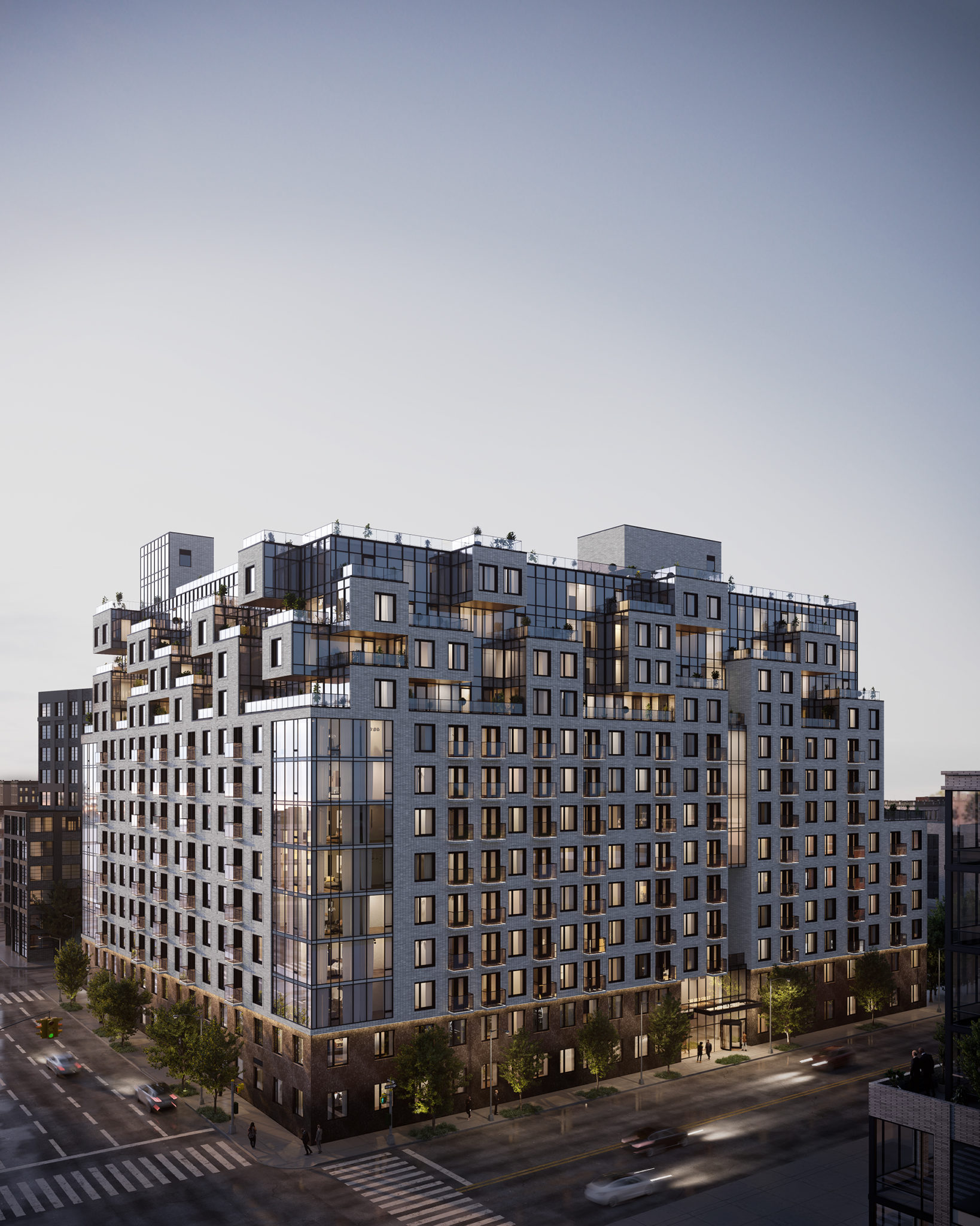 A new 13 story + cellar residential building with a total gross area of approx. 260,000 SF, based on the current C6-2/R8 equivalent and R6B zoning district. The building will house 286 residential dwelling units. Amenities include automobile and bicycle parking, lounge, game room, business center, laundry, kids play room, gym, theater, pet spa and roof terrace.