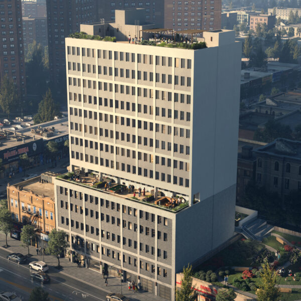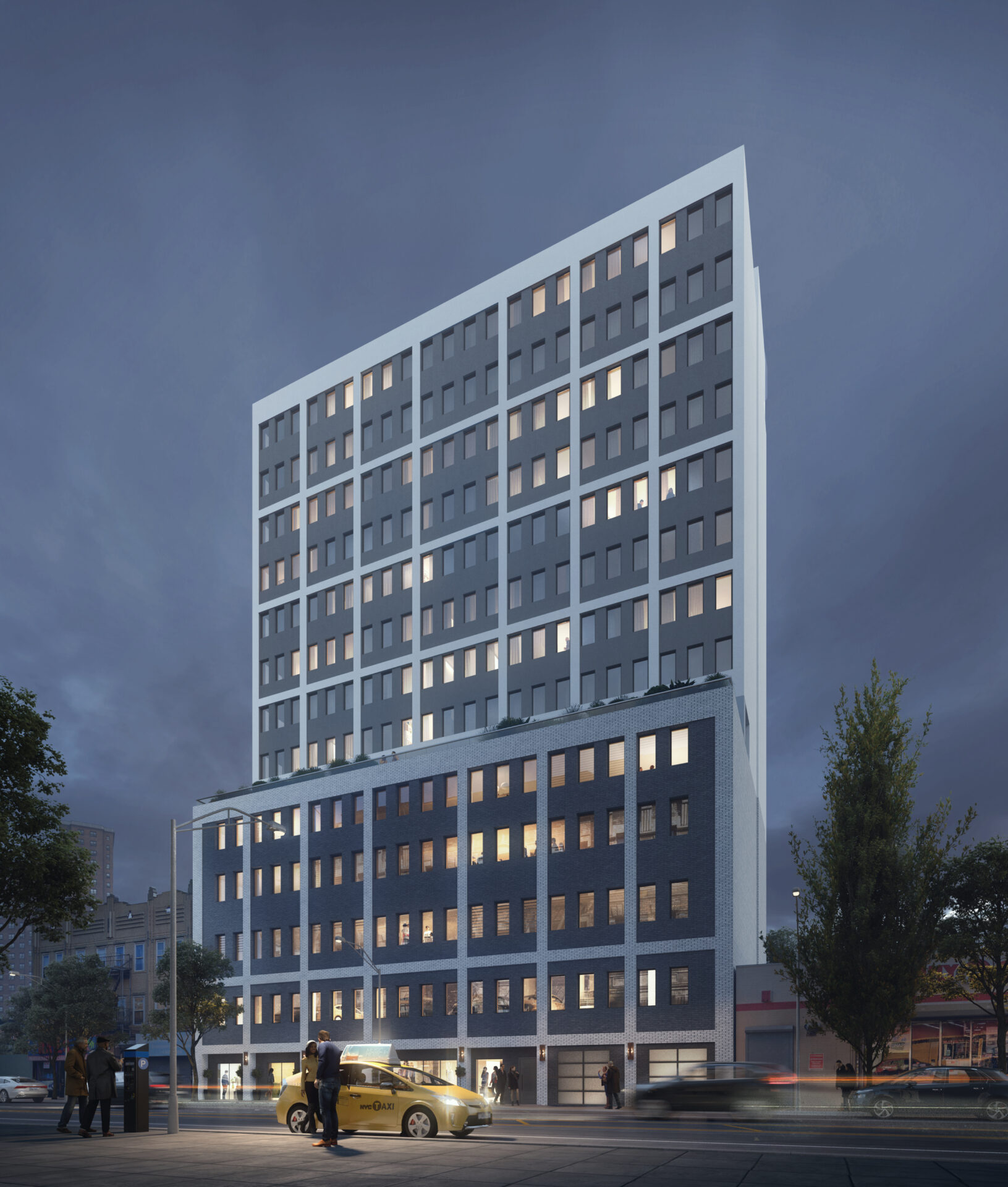 An exciting new 13-story mixed-use project located in Brooklyn, 398-402 Mother Gaston Boulevard includes 62 apartments with various outdoor recreation spaces, big box commercial space at ground level, community facility floors, and an enclosed parking structure.