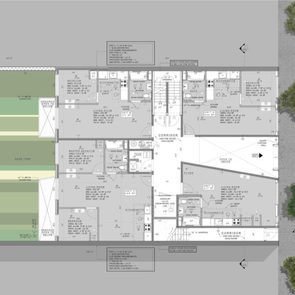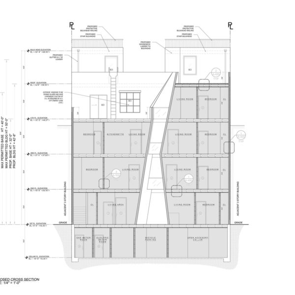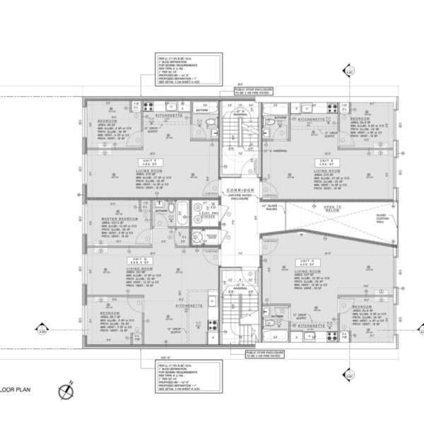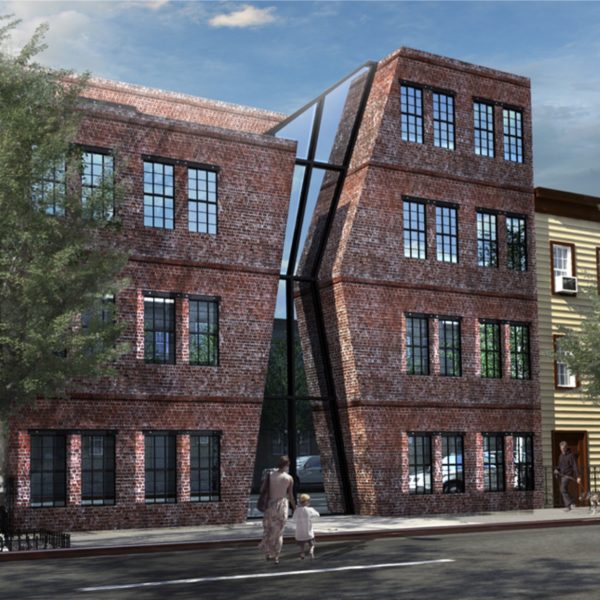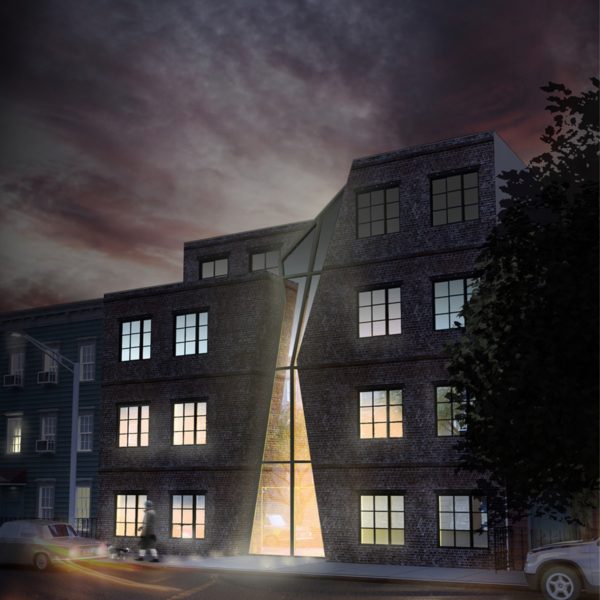 Located in Greenpoint, this project brings new loft-like apartments to this rapidly evolving part of New York. Its design features an entrance atrium which cuts through all levels opening up to the sky. The severe angles it is composed of creates a sense of movement through its manipulation of light filtering through each level. This interstitial space allows for an integration of the formal and informal programs of the art community, inviting a transient gallery to grow organically along the walls. Clad in glass, this moment is translated to the exterior in a sharp collision with the brick facade.