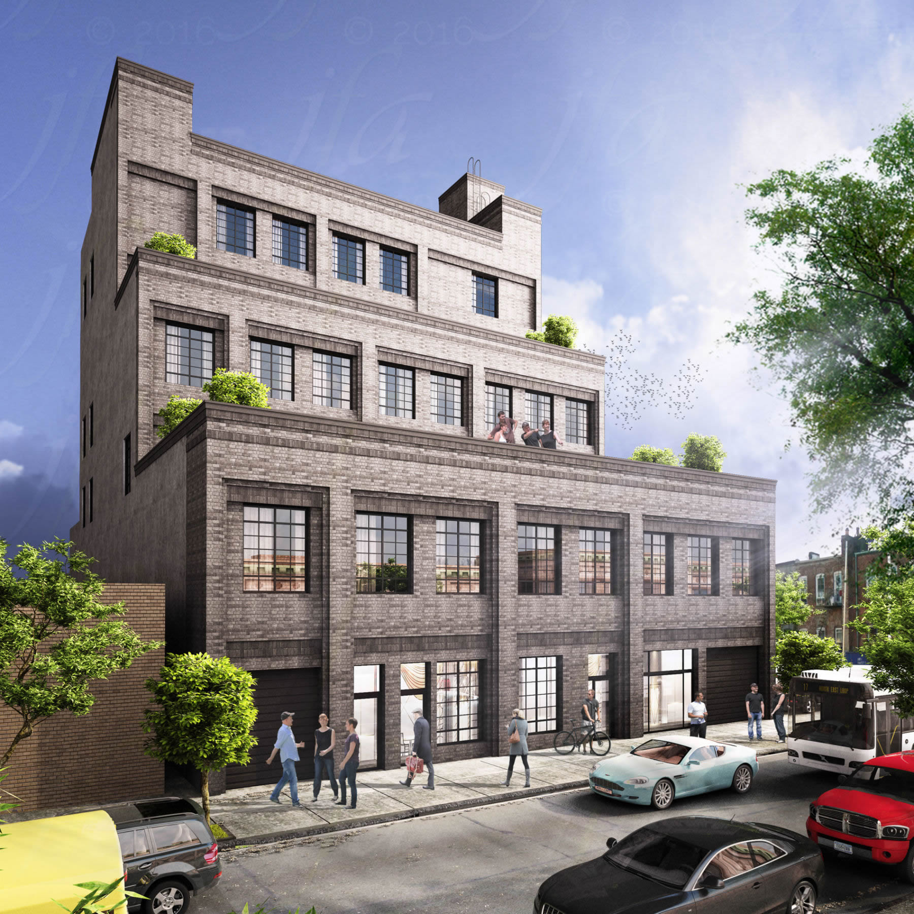A new 5-story commercial / community facility building located in Prospect Lefferts Gardens neighborhood in Brooklyn near the historic Prospect Park. To keep with the context of the neighboring one-story buildings, there is a deep set-back above the second floor and again at the fourth floor to create the illusion of a smaller building as passerbys walk along the sidewalk. The setbacks create additional, usable exterior space that can be used by the tenants. The approximately 44,800 gross square foot building also includes two levels of parking.