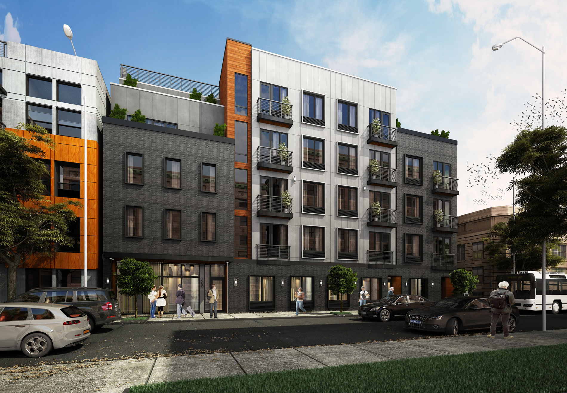 A new 5 story + Cellar mixed used building with a total gross area of approx. 30,000 SF, based on the current R6 (Quality Housing) zoning district which permits a max FAR of 2.20 for residential and max FAR of 1.0 for commercial. The building houses 32 residential dwelling units and accessory spaces that include bicycle parking in the cellar, automobile parking in the rear yard and a recreational space on the 1st floor.