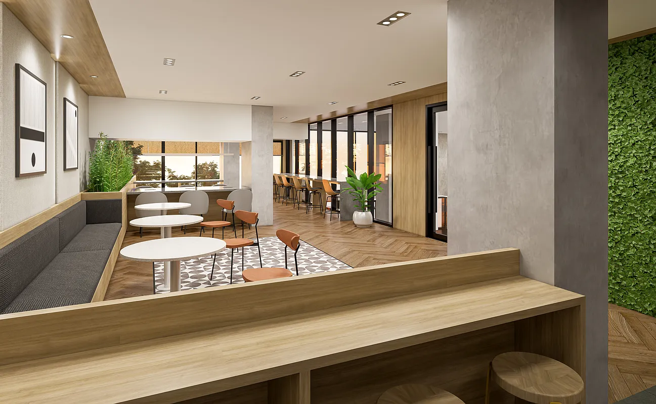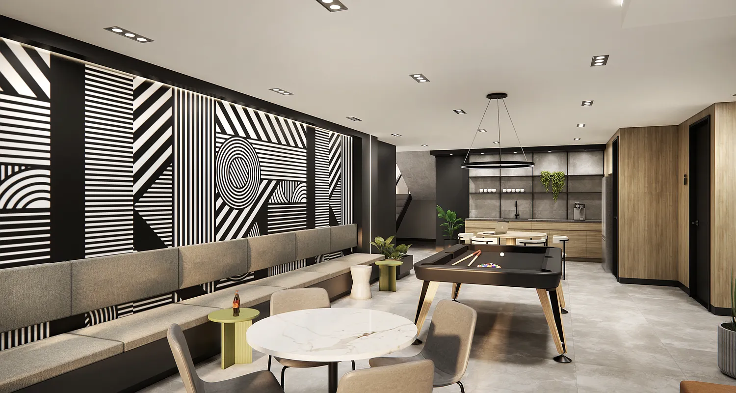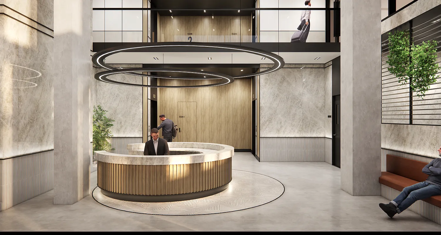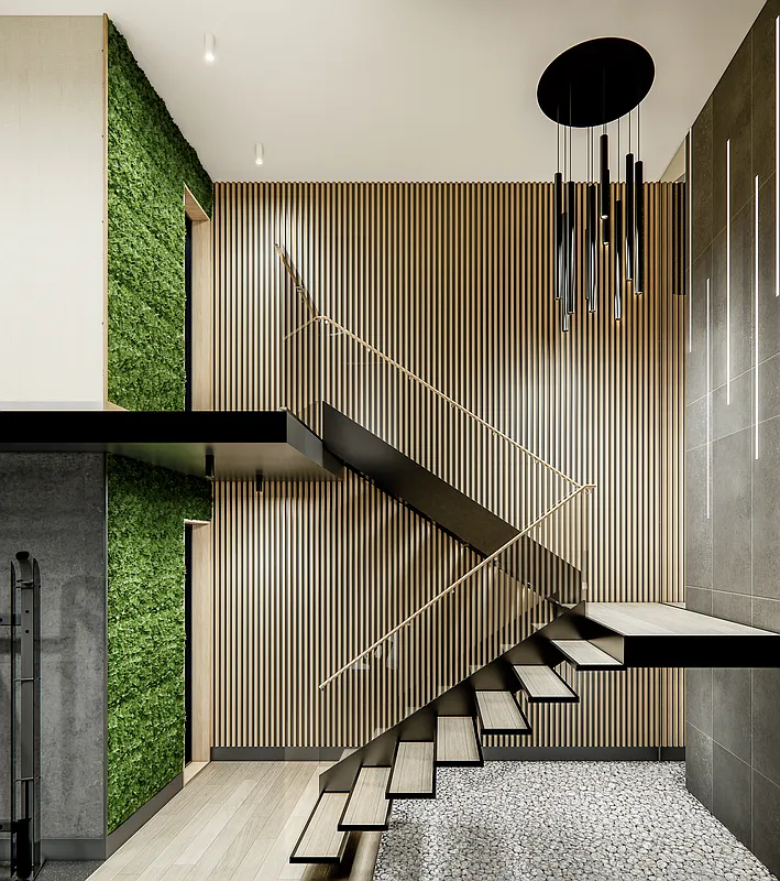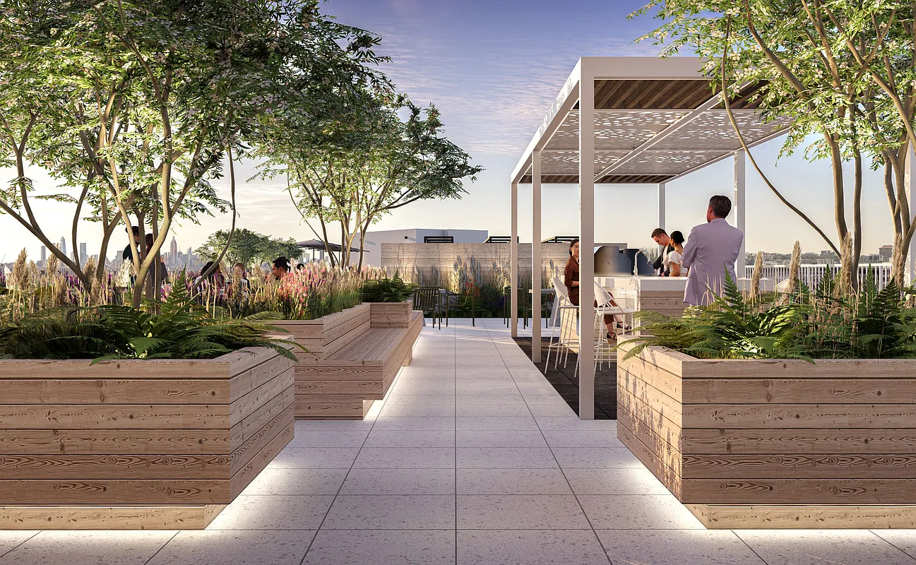 Within the R8A zoning area, the building steps up to the 14-story height limit, establishing a consistent street wall and reinforcing the surrounding mid-rise scale. As the site transitions into the R9A district, the building rises to a maximum of 17 stories. Upper-level stepping and setbacks are carefully calibrated to comply with NYC Zoning Resolution requirements, producing a terraced form that reduces perceived bulk while preserving light and air at the street.